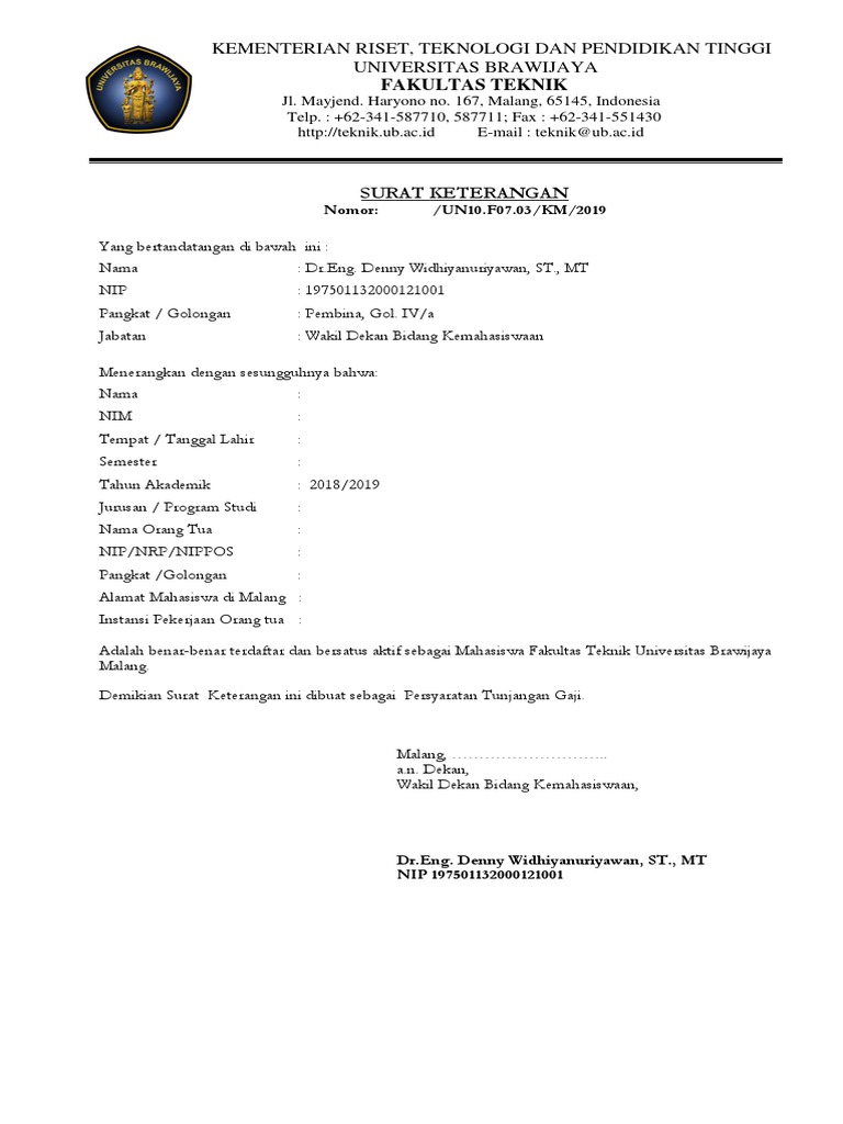 Surat keterangan kuliah ub Surat Keterangan Aktif Kuliah