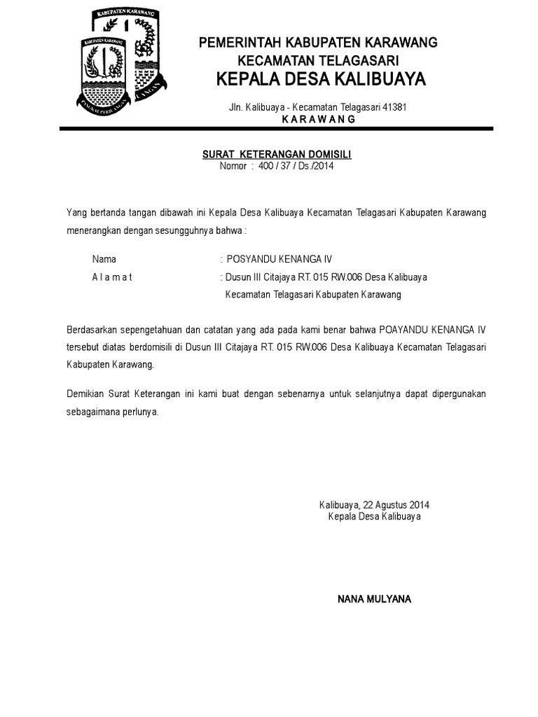 Contoh surat keterangan domisili tk Keterangan Domisili